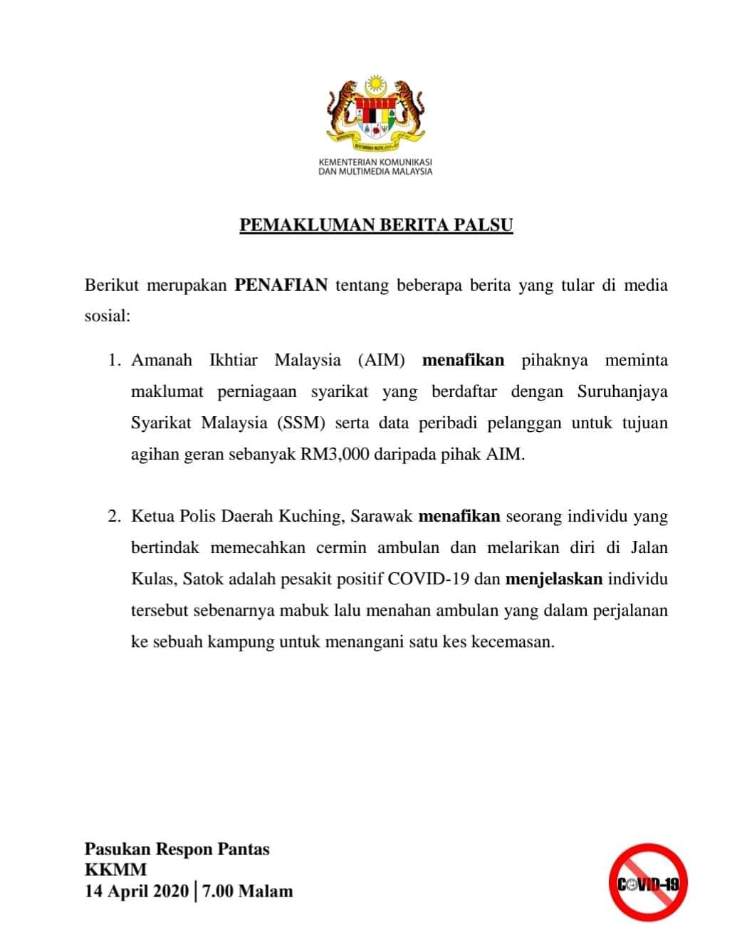 BERITA PALSU 14 APRIL 2020