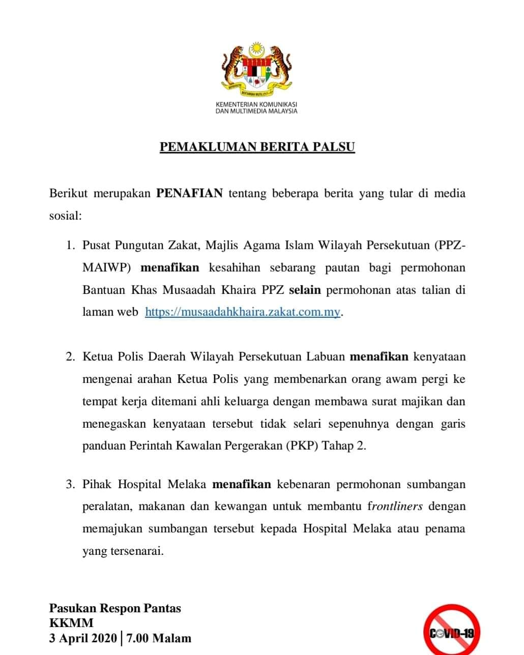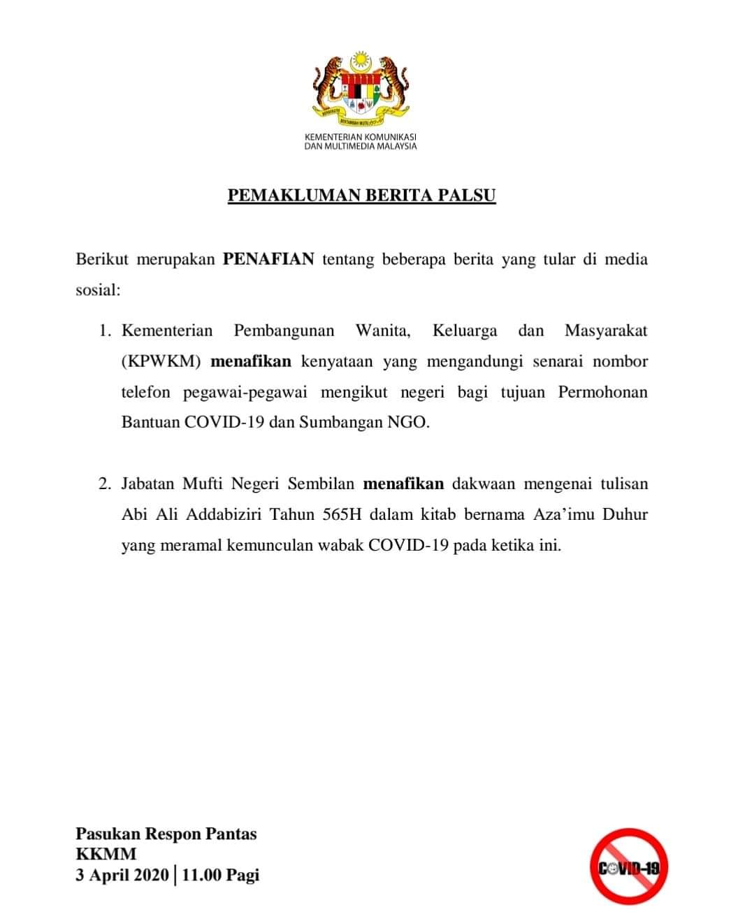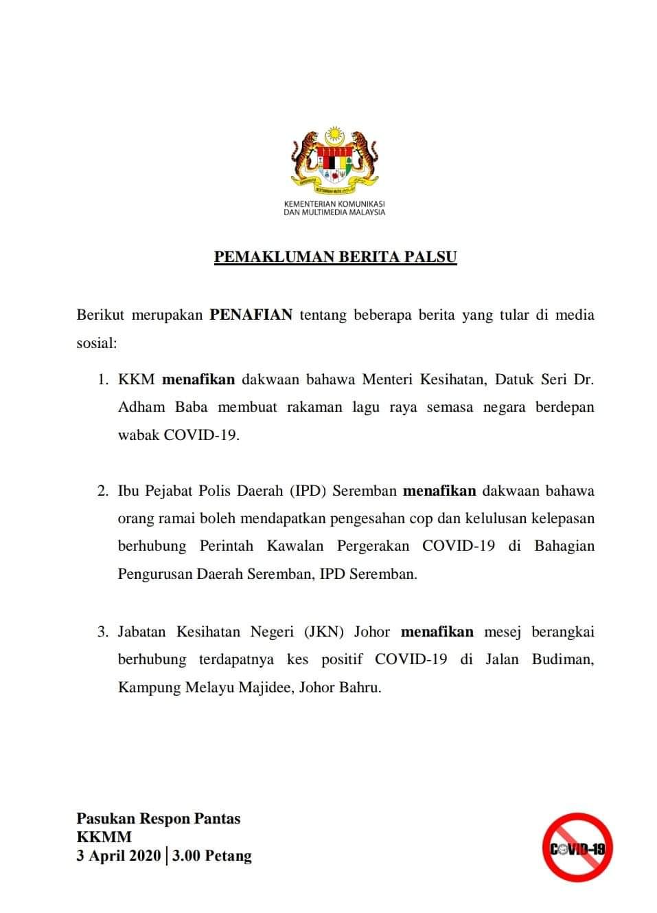 BERITA PALSU 3 APRIL 2020