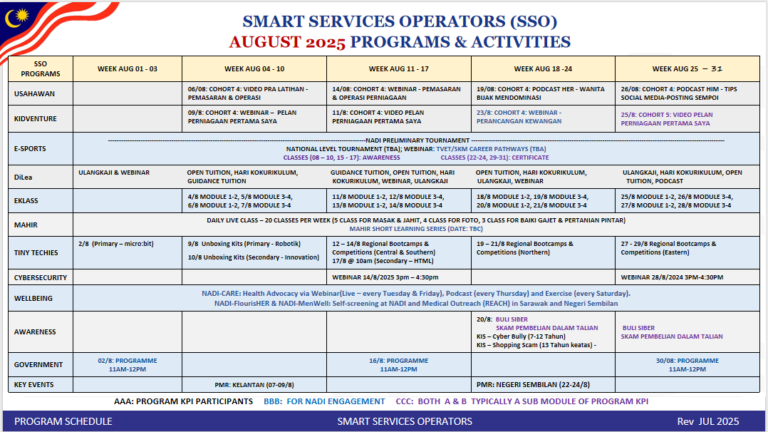 Takwim program dan aktiviti bulan OGOS 2025 NADI Buluh Kubu