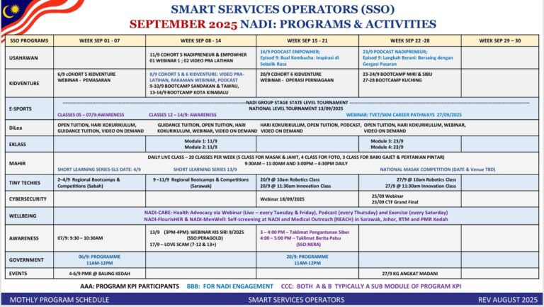 Takwim program dan aktiviti bulan SEPTEMBER 2025 NADI Buluh Kubu