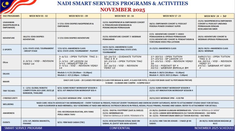 Takwim program dan aktiviti bulan NOVEMBER 2025 NADI Buluh Kubu