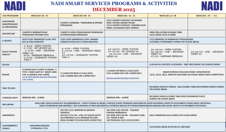 Takwim program dan aktiviti bulan DISEMBER 2025 NADI Buluh Kubu