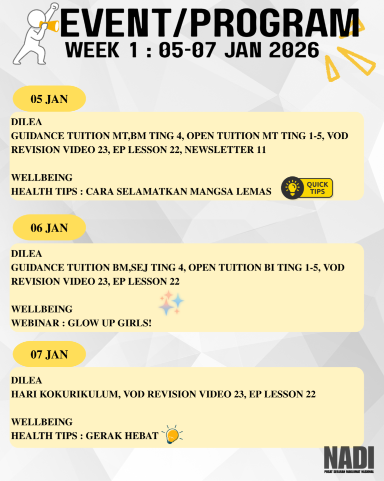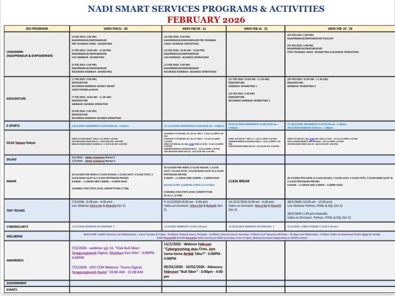 Takwim program dan aktiviti bulan FEBRUARI 2026 NADI Buluh Kubu
