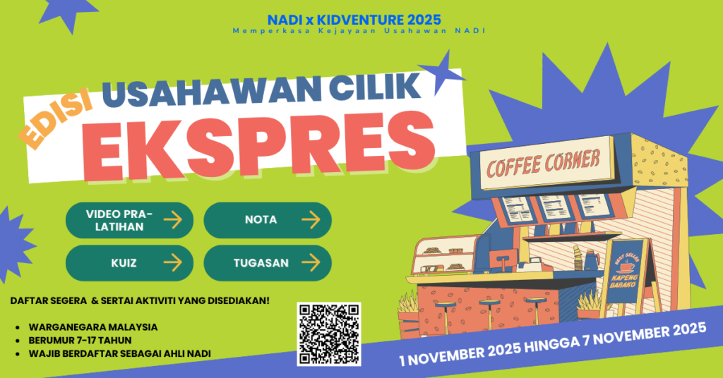 NADI X Keusahawanan membuka penyertaan Program KidVenture – Edisi Ekspres kepada ahli-ahli NADI dalam komuniti NADI Buluh Kubu bagi bulan November bermula 1-7 November.