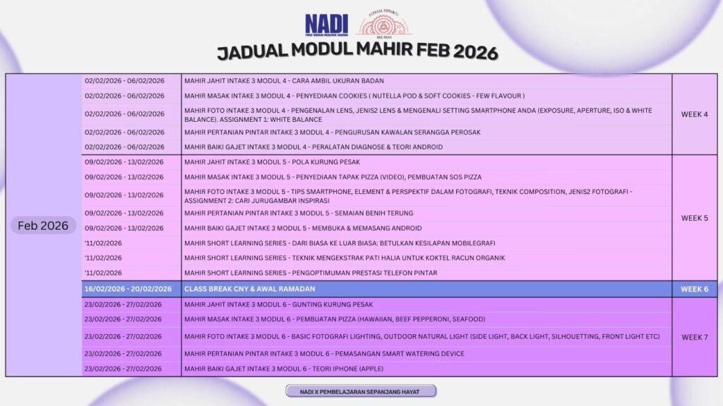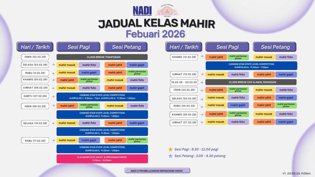 JADUAL KELAS MAHIR FEBRUARI 2026