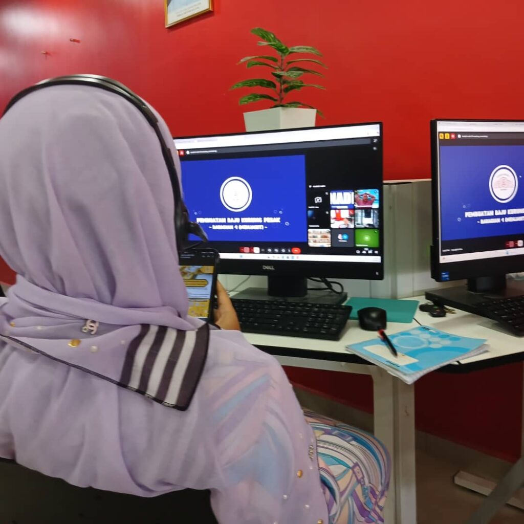 Peserta juga diajar cara memotong ikatan pinggang kain, cara memotong getah pinggang. Di akhir kelas, peserta mempelajari carta saiz kain bagi dewasa dan carta saiz kain bagi kanak-kanak.