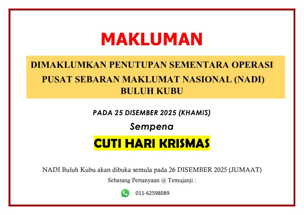 NOTIS PENUTUPAN SEMENTARA NADI BULUH KUBU SEMPENA CUTI PERAYAAN HARI KRISMAS