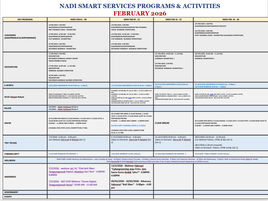 KecekKiroDiNADI #JelajahNADI #MADANI #NADIKelantan Penduduk sekitar Kota Bharu dijemput hadir ke Program Outreach ICU @ NADI pada: 🗓 5hb Februari 2026⏰ 10.00 pagi – 3.00 petang📍 NADI BULUH KUBU Antara perkhidmatan yang disediakan :✅ Semakan & Pendaftaran eKasih✅ Bantuan Sejahtera […]