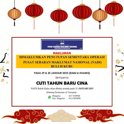 PENUTUPAN SEMENTARA OPERASI PUSAT SEBARAN MAKLUMAT NASIONAL (NADI) BULUH KUBU SEMPENA CUTI TAHUN BARU CINA