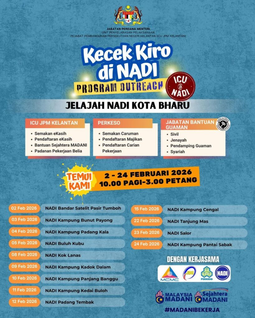 📌 Program diadakan di lokasi NADI terpilih sekitar Kota Bharu mengikut tarikh yang ditetapkan.